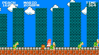 127 BPM is designed for use with DDR dance pads. Run on the front of the pad to run in the upper lane. Run on the back of the pad to run in the lower lane. Player 1 is represented by Princess Peach, Player 2 is Mario. The first one to make it to the MTA Subway pipe wins. All the non-player pedestrians walk at 127 beats per minute and will become annoyed with you if you move any slower than that. In an homage to the original Mario Bros. game, the players are given 400 Mario ticks (0.4 seconds) before time is up.